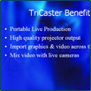 TriCaster BROADCAST yapmış olduğunuz tüm reji işlemlerini tek bir tuş ile mevcut kapasitenize yüksek kalitede kayıt eder. Hemde mpeg2 formatında. Bu format sayesinde TriCaster ile yapmış olduğunuz tüm kayıtlarınızı istediğiniz kurgu sistemine herhangi bir format dönüşüm işlemine tabi tutmaksızın yükleyelibirsiniz. |